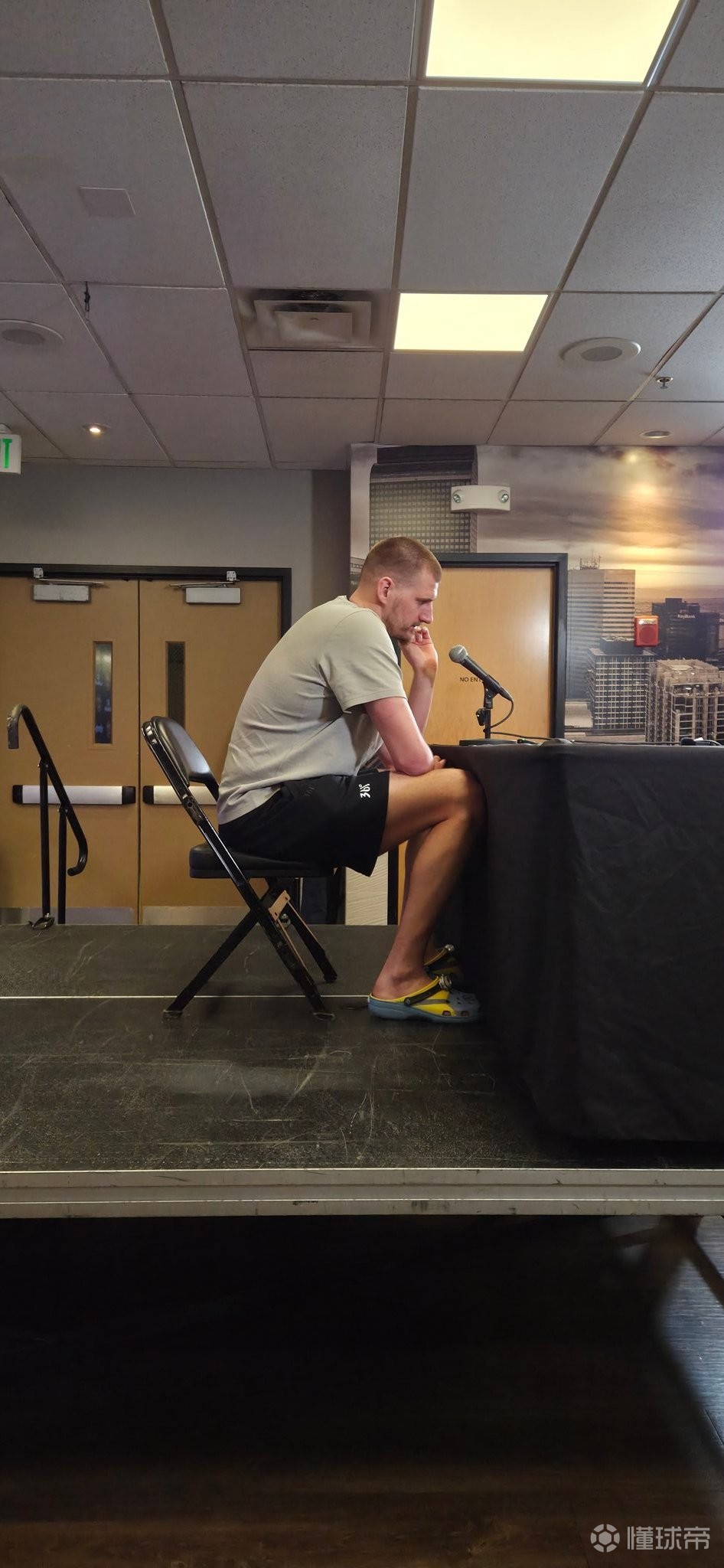 賽后,約基奇出席了新聞發(fā)布會。據(jù)掘金攝影記者RyanGreene報道,約基奇在出席發(fā)布會時展現(xiàn)了其內(nèi)心可愛的一面,球員腳踏小黃人系列洞洞鞋接受采訪。