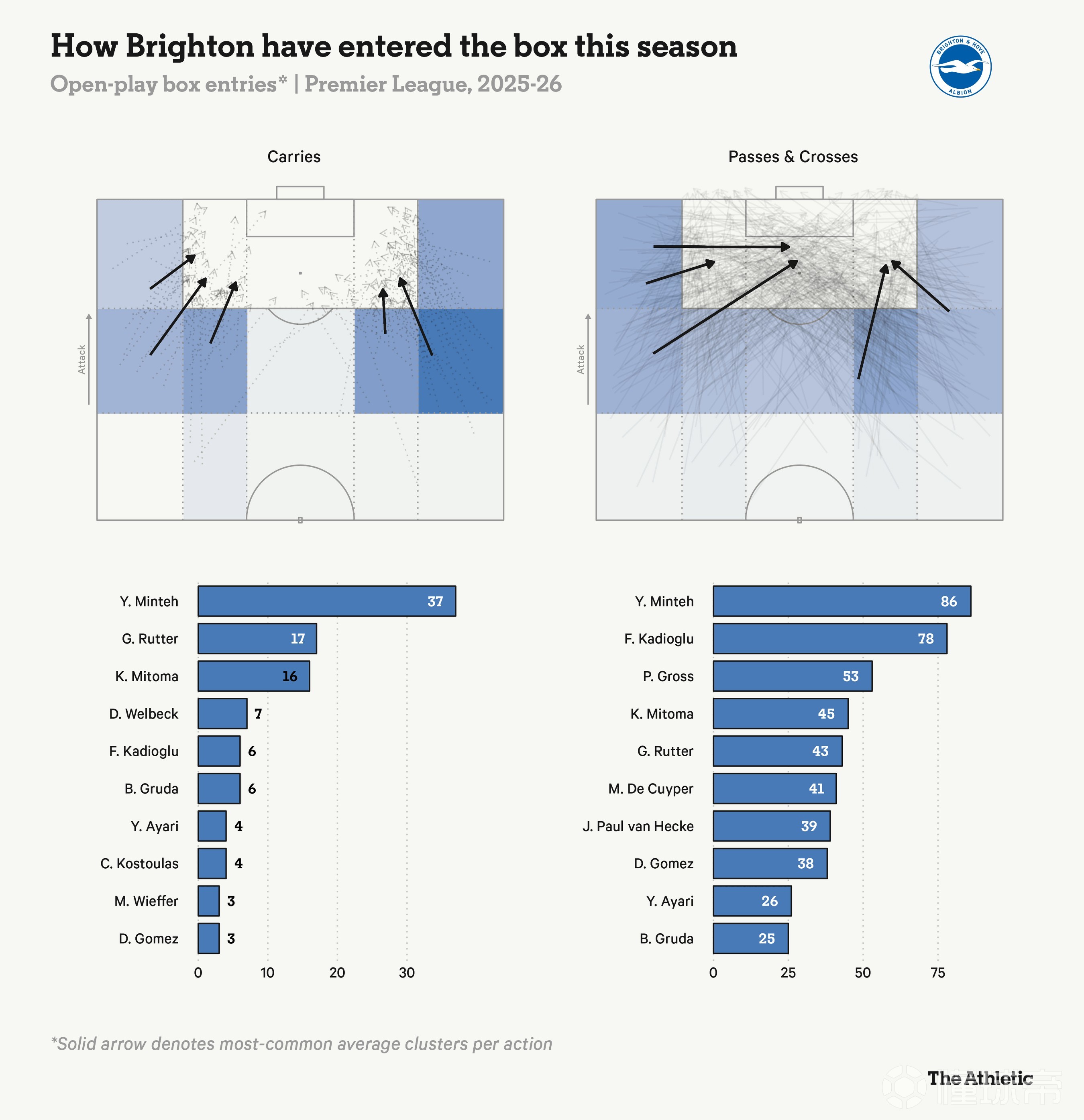 粗糙也是對他在其他方面表現(xiàn)的中肯評價。19歲的他,產(chǎn)出自然不能與歐洲頂級球員相提并論,但106助攻的數(shù)據(jù)也相當可觀。與利物浦此前心儀的安托萬-塞梅尼奧類似,迪奧曼德是一名雙足都能處理球的球員,但踢右路時更偏向使用右腳。