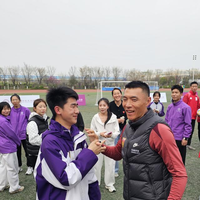 在活動(dòng)過程中,一位學(xué)生在見到于大寶后一度激動(dòng)落淚。一旁的老師表示:“他中午專門來找我,因?yàn)橄挛缫荚?,?dān)心見不到(U23)國(guó)足怎么辦。”